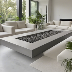 Chimenea de piedra de mesa rectangular con control remoto para interiores y exteriores Chimenea portátil Diseño francés Sin humo Sin olor